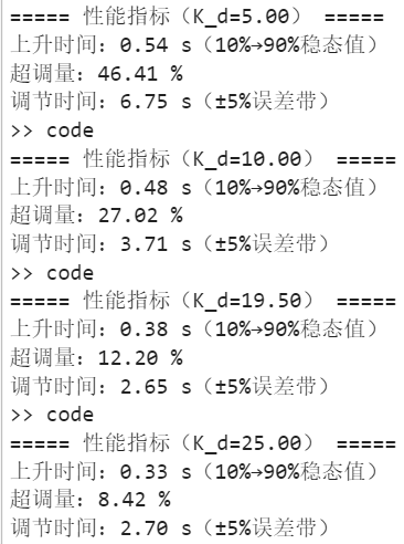 fprintf('===== 性能指标(K_d=%.2f) =====\n', Kd);