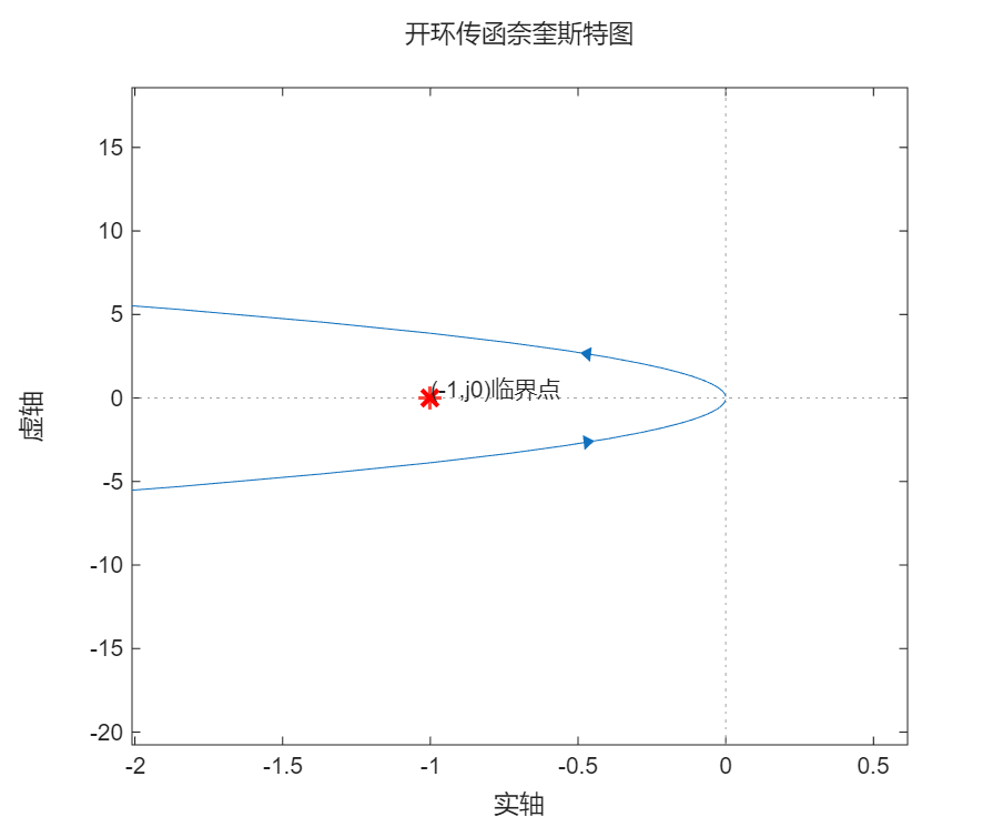 基于系统的频率特性,可以很容易在MATLAB中画出其奈氏图。运行如下代码: