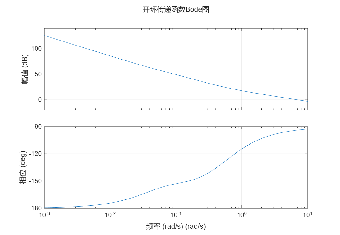 在MATLAB中使用类似的方法,可以绘制系统的Bode图。运行以下代码: