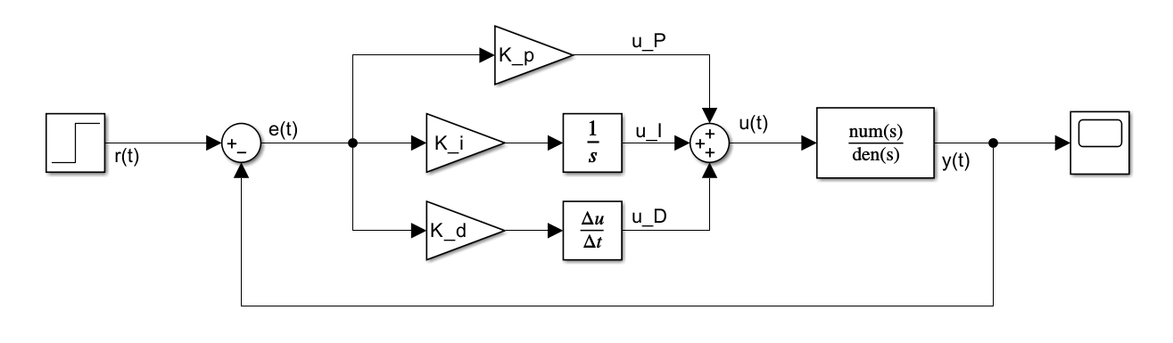 \[ U(s) = K_pE(s) + \frac{K_i}{s}E(s) + K_d\cdot sE(s) \]