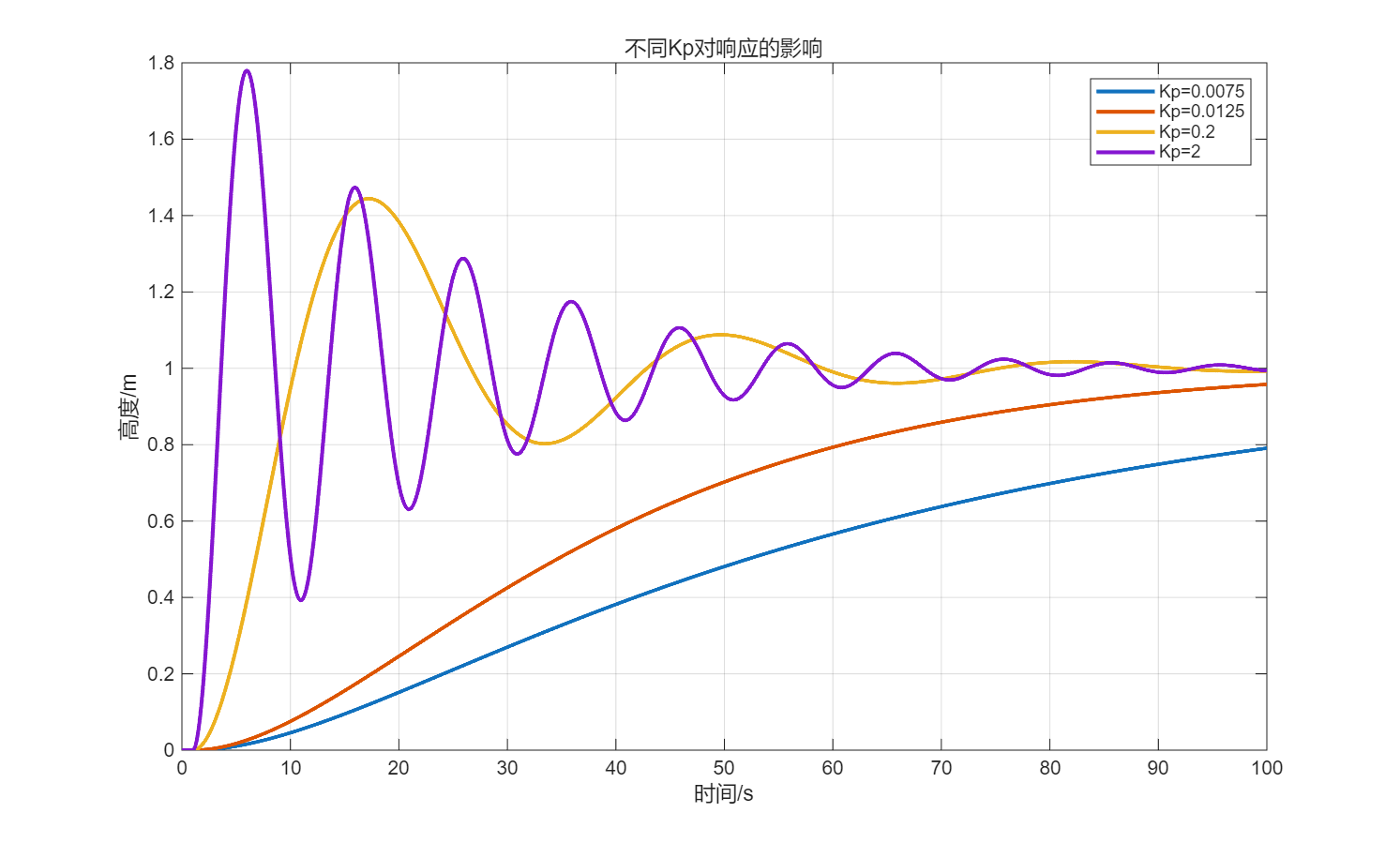 对于这个实验假设的简易无人机飞行高度控制系统,我们使用了PID控制器让系统对于单位阶跃响应能够快速达到控制目标。其中参数分别为: