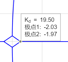 观察图像可以发现,当\(K_d<19.5\)时,闭环特征方程有两个复数根,系统为欠阻尼,存在振荡。当\(K_d>19.5\)时,闭环特征方程有两个实数根,系统为过阻尼,无振荡。